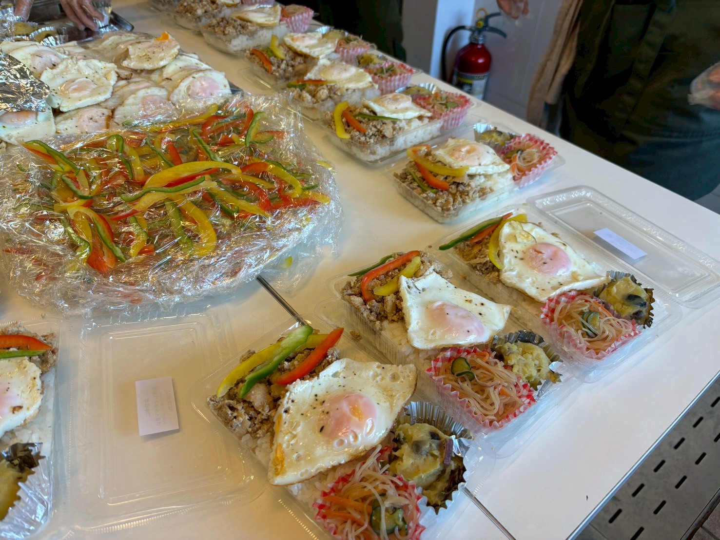 2月のお弁当は、「ハレバレ〜ガパオライス弁当」 🌸😆🌸タイ気分で心も体も南国気分で見た目も食欲をそそる〜💖だからアッという間にペロリ〜💖なお弁当でした✨💖✨ 🌸😆🌸✨💖✨(1個300円🐑清美ちゃん作 「喜びいっぱいのひつじたち」みことば絵はがき付)✨ 🌸😆🌸✨💖✨💖✨ 🌸😆🌸✨💖✨