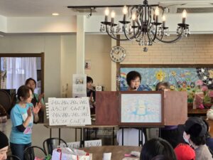 クロス店長もイエス様と一緒に、お空から恵みの光シャワーを、たっくさ〜ん! ! !注いで下さってました〜🌈💖✨🌈💖✨🌈💖✨ さてさて、チーム紙芝居with賛美チームによりますお話は〜・・・