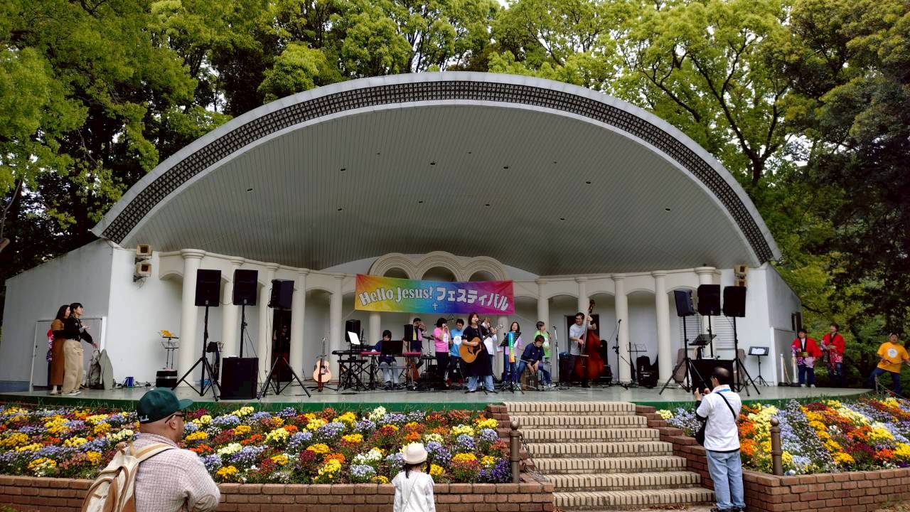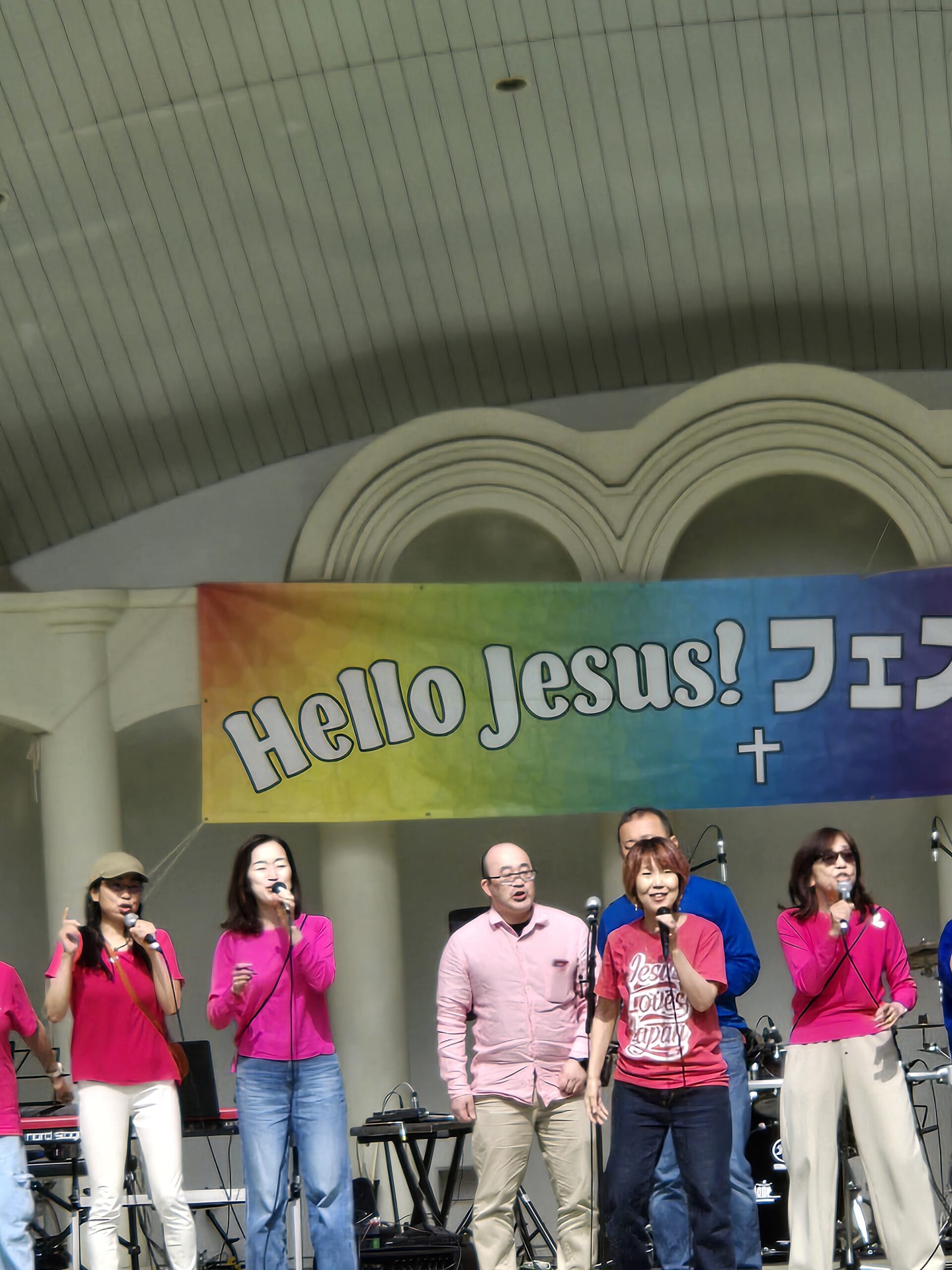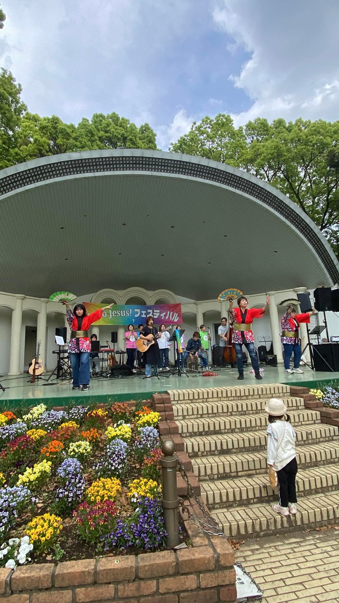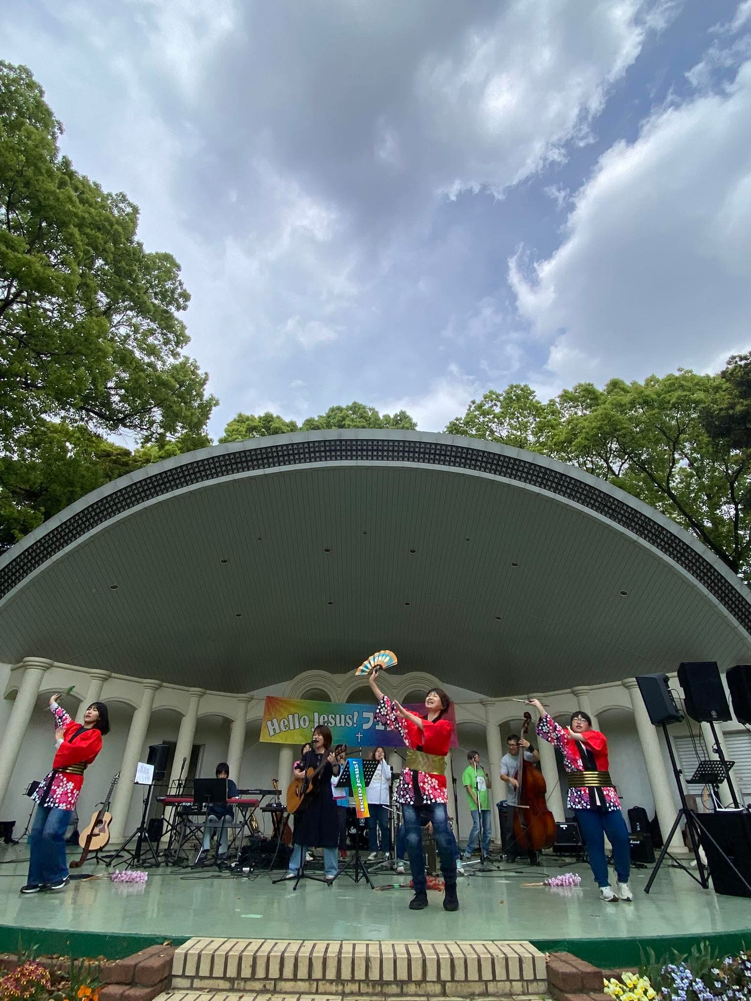 2026/4/25(土)は、横山大輔さん、和子さんプロデュースの「Hello Jesus!フェスティバル」が、大和市引地台公園野外音楽堂にて開催されました👑✨🌹✨👑 「く」(IKUMI)の出演ステージに、賛美チーム、Jesus Grace Church Choir(JGCC)、賛美クスチームで、一緒に参加させて頂きました👑✨🌹✨👑