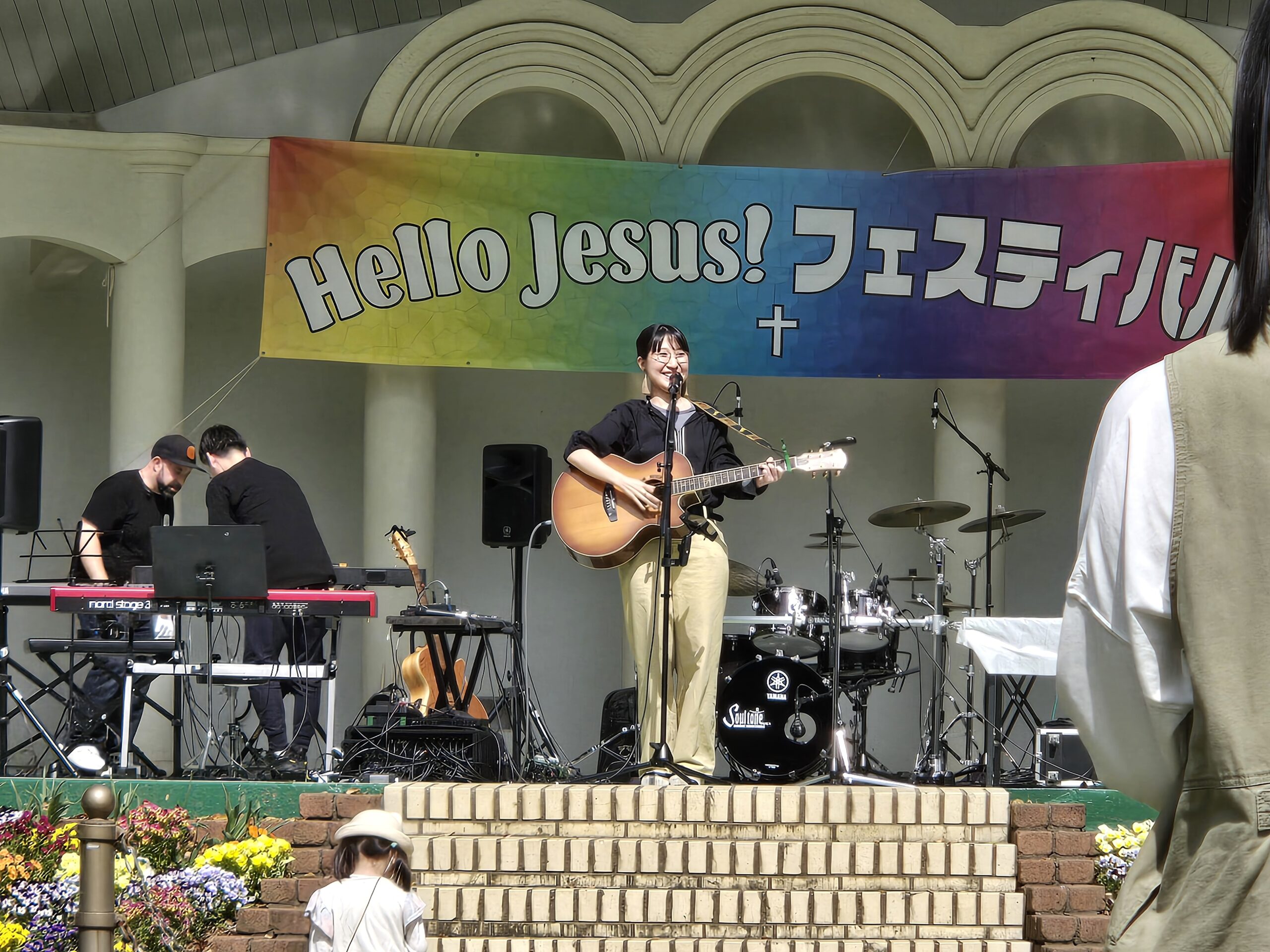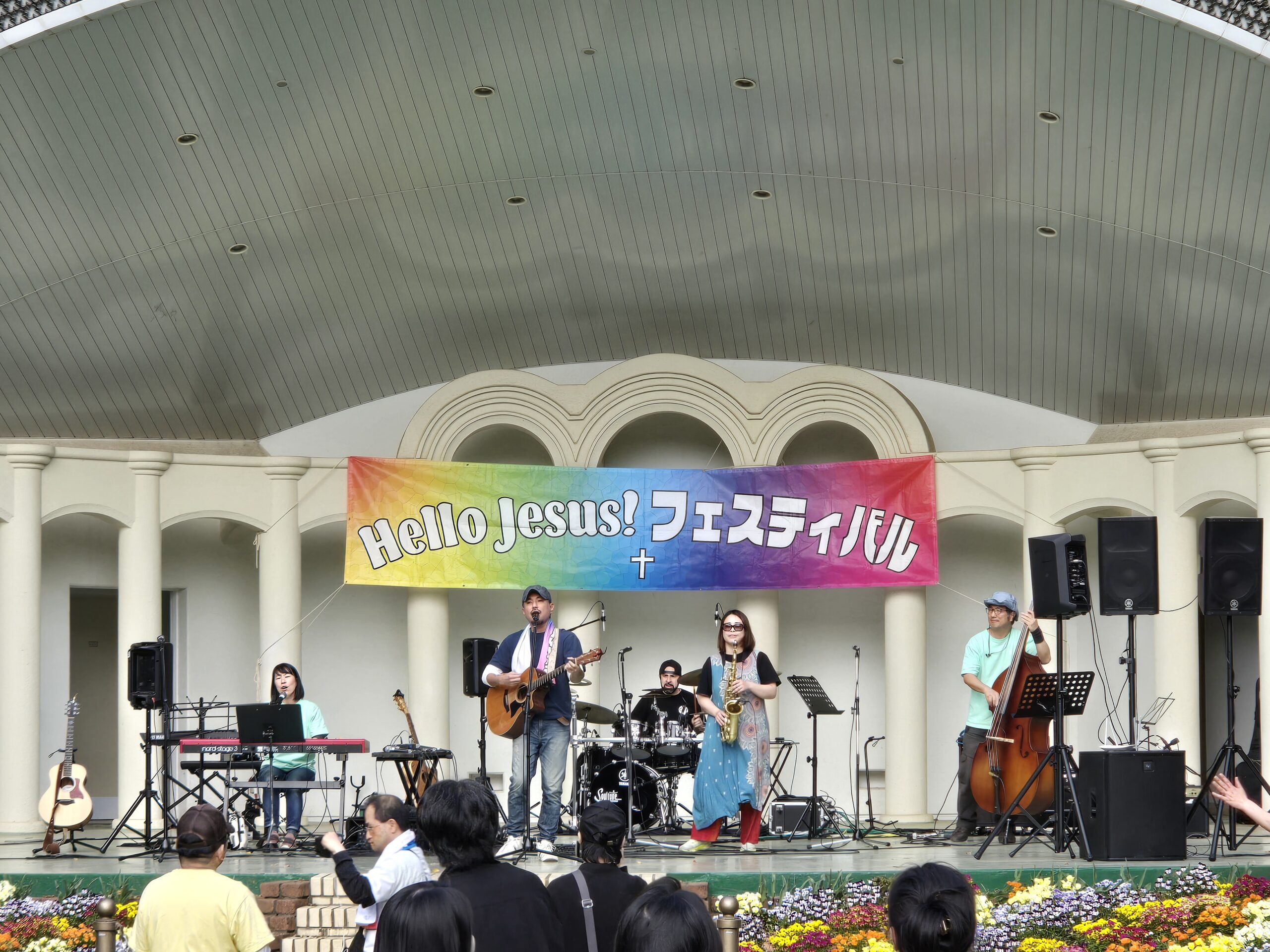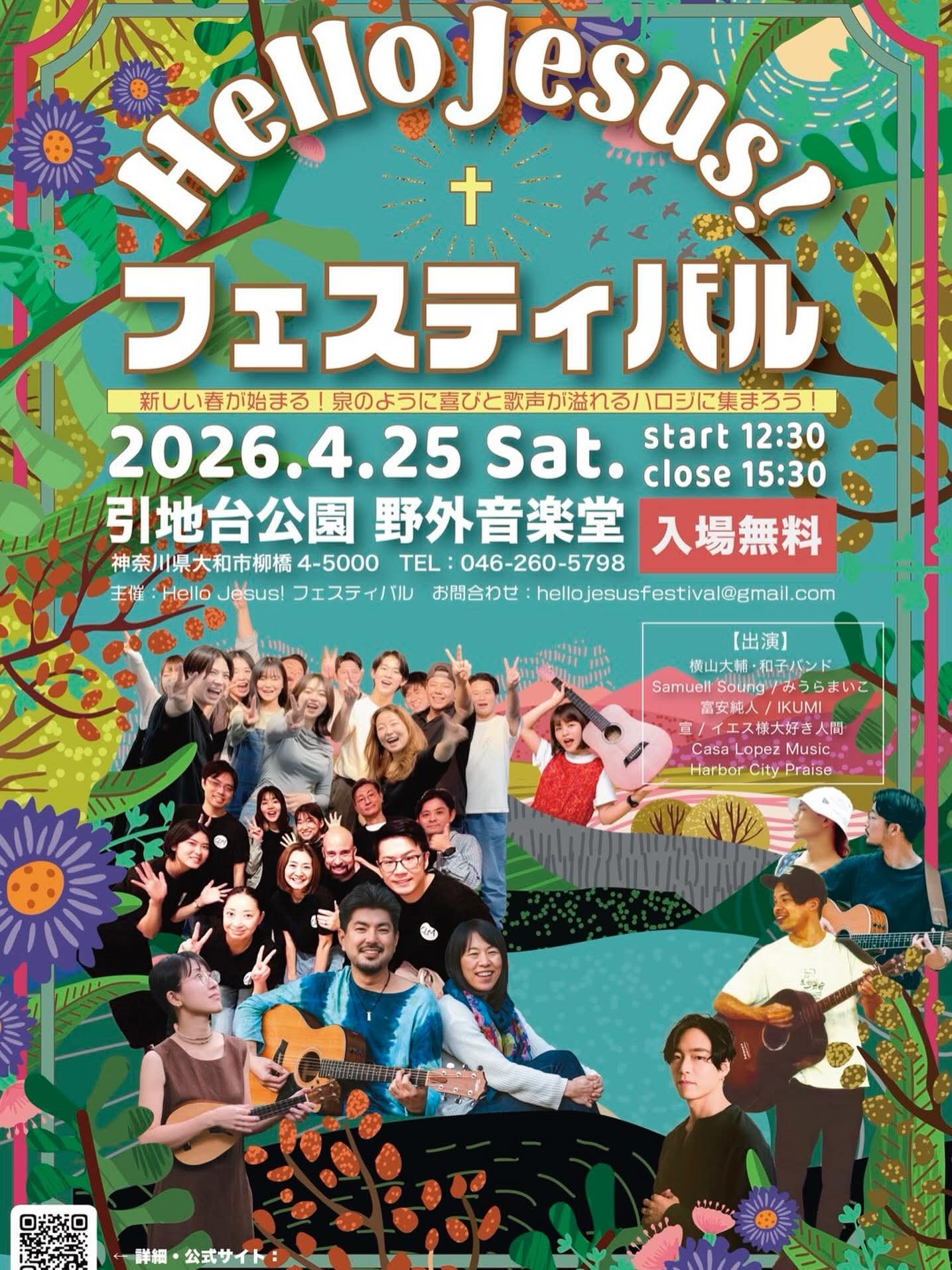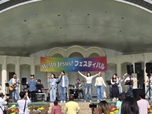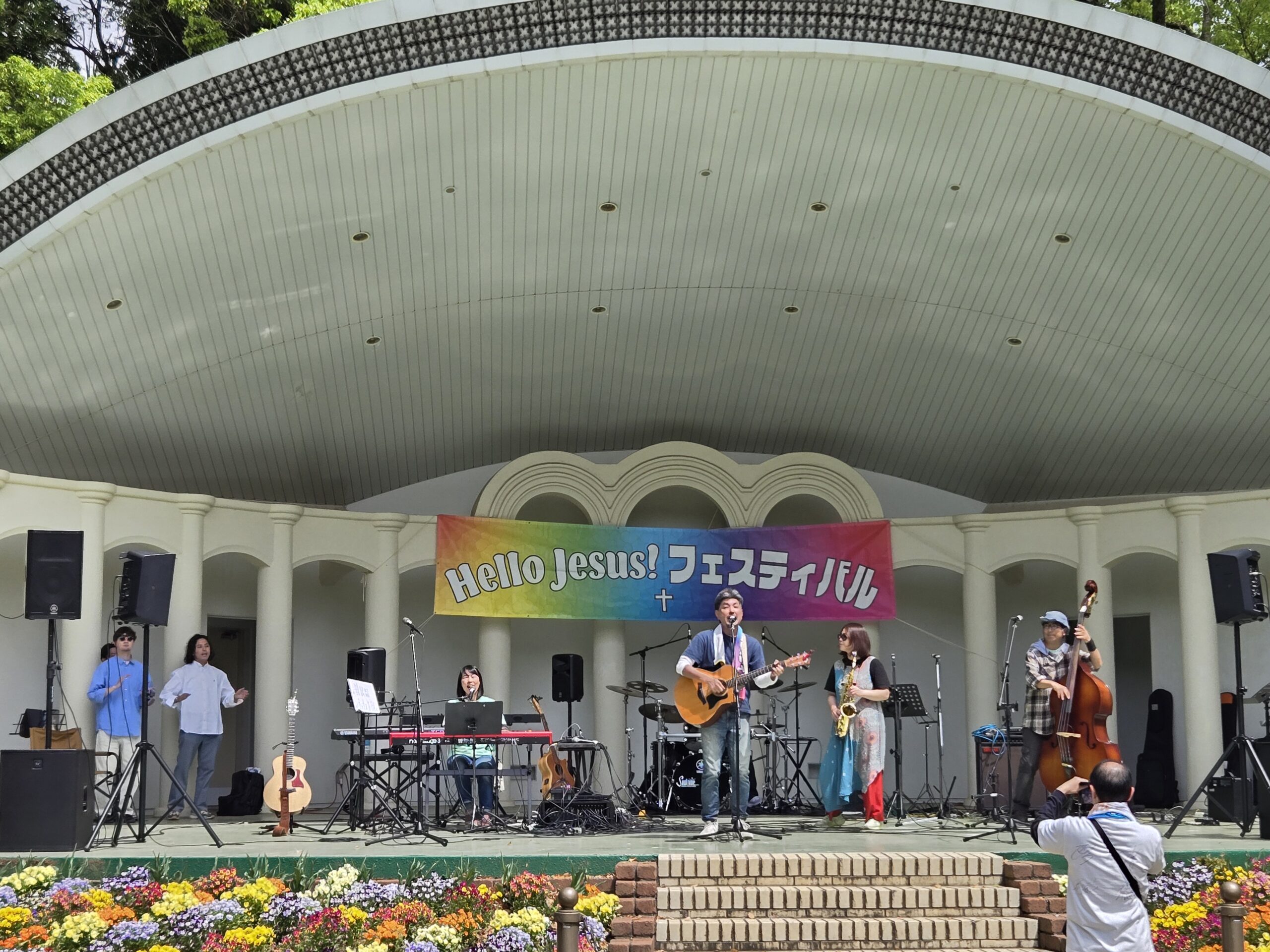 2026/4/25(土)は、横山大輔さん、和子さんプロデュースの「Hello Jesus!フェスティバル」が、大和市引地台公園野外音楽堂にて開催されました👑✨🌹✨👑 「く」(IKUMI)の出演ステージに、賛美チーム、Jesus Grace Church Choir(JGCC)、賛美クスチームで、一緒に参加させて頂きました👑✨🌹✨👑
