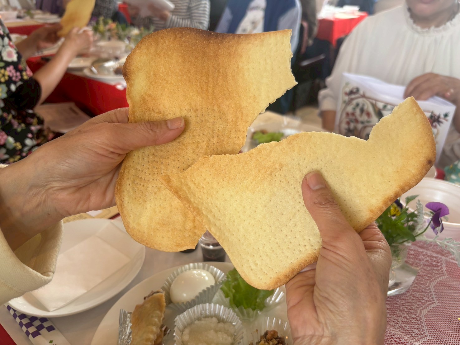 2026.4.5(日)は、過ぎ越し祭り(セデル)を行いました✨🌹✨ 旧約時代、主がモーセを通して、エジプトで奴隷として苦役していたイスラエル民族をエジプトから脱出させて下さった事、神の御子イエスキリストが、わたし達の罪を全て背負い、十字架にかかり、死なれ、お墓に入り、三日目に死者の中からよみがえられた✨👑✨サタンに勝利され、 わたしたちを罪の奴隷から贖い出し、自由にして下さった、イエス様の大いなる十字架の御業に感謝し、お祝い致しました🌹✨✝️✨🌹(過ぎ越し祭りは、英語で「Passover(パスオーバー)」、ヘブライ語で「Pesach(ペサハ)」と言います。)