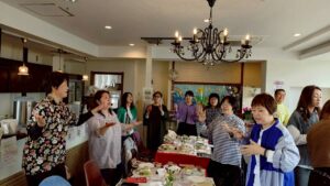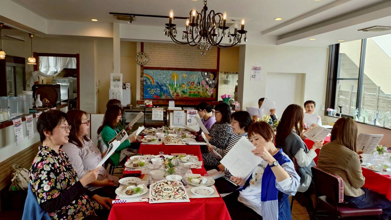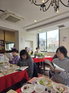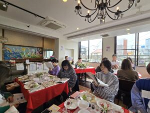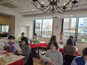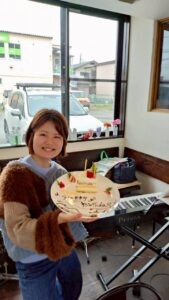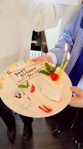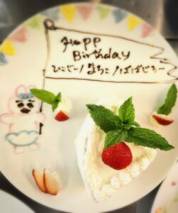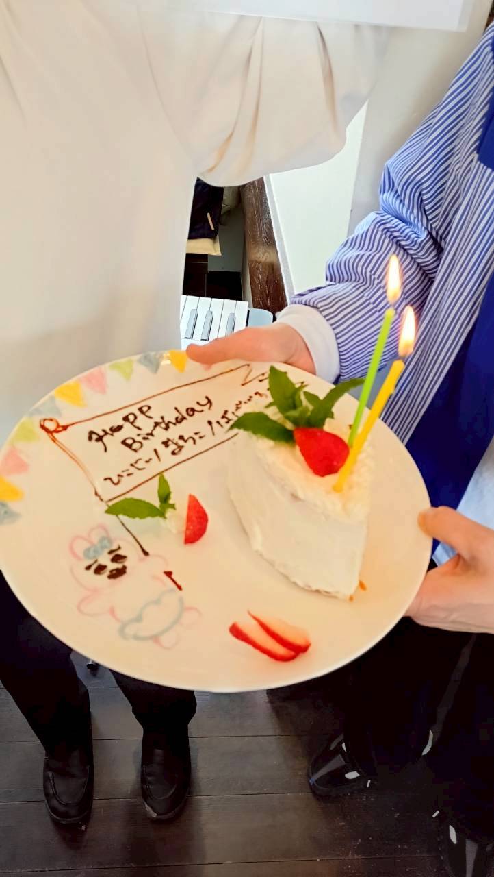 セデル後の交わりランチにて、3月& 4月生まれの、馬場ちゃん、「く」、そして、ゲストのJUNKOさん、輝子さんを、お祝い致しました✨🎂✨✨🎂✨✨🎂✨