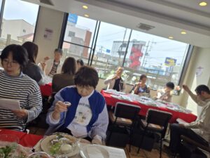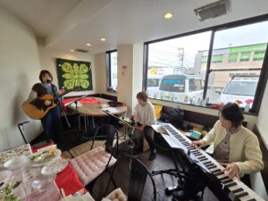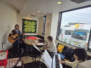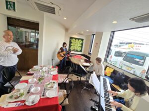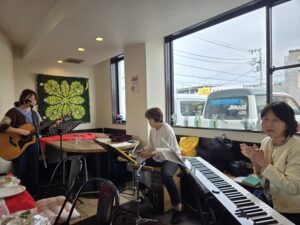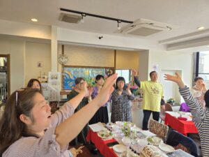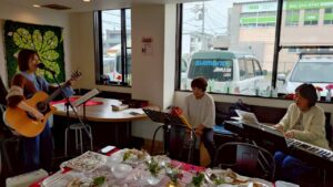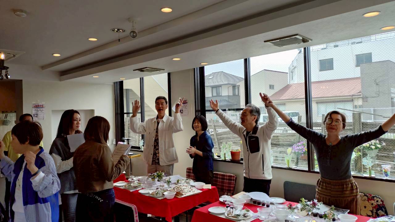 プログラムの要所々では、賛美チーム【「く」(IKUMIさん)・うっちーさん・はあちゃん】の演奏と歌に合わせ、みんなで一緒に賛美しました✝️✨🎶✨✝️(「マイムマイム」「ヒネマトーブ(主は良きお方)」「ホドゥ ラドナイ キー トヴ」「ダイエヌ」はじめ、「く」が、主から啓示を受け造った「復活」「UGOMEKI」も賛美いたしました🌹✨✝️✨🌹)
